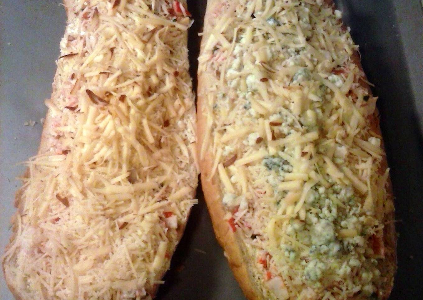 - 1 french loaf split and spread with garlic butter