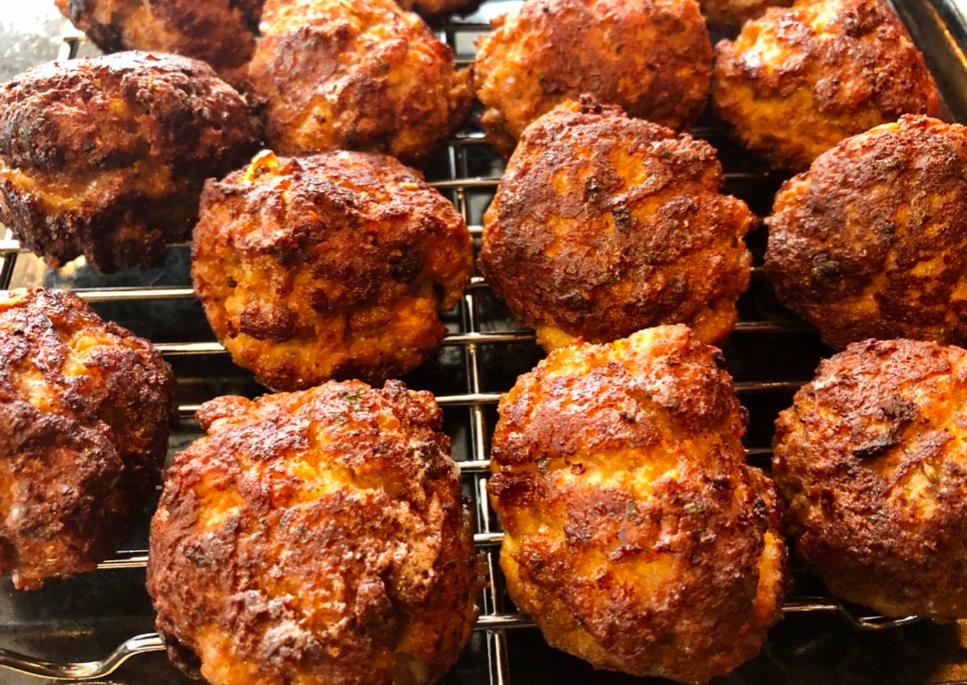 These are a variation of my Italian grandmothers beef, pork and veal meatballs that are made with turkey. They are so good I was selected for a season of MasterChef For the best combo, look up my Nanny's Basil Marinara