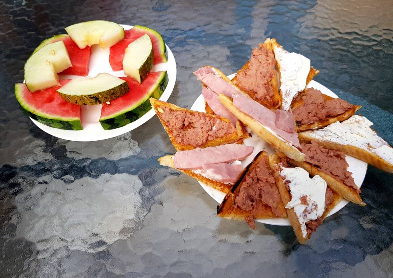 - Add some with patè, some with Ham and some with cheese spread or cheese spread and ham. Add some Water Melon also