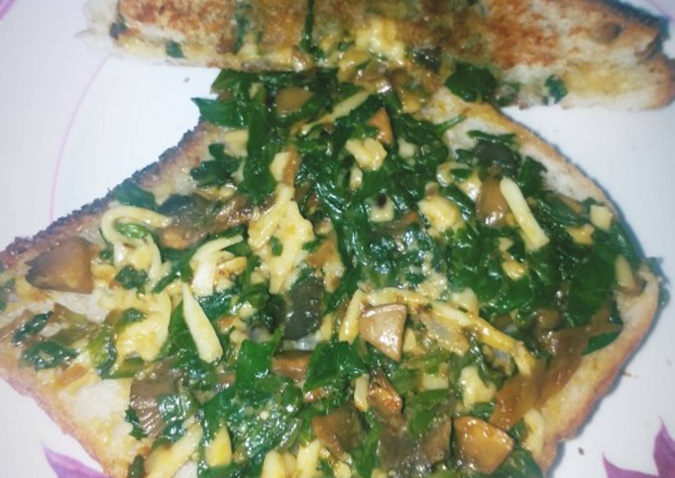 - Add chopped palak and mushrooms,salt and black pepper.Saute till it is done.