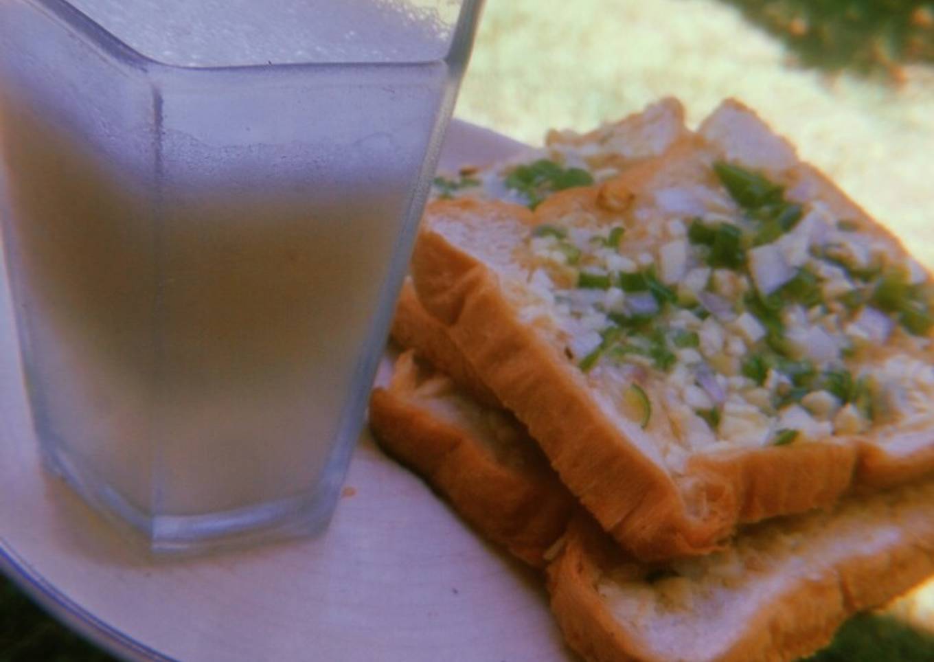 - Apply the garlic paste on the bread.