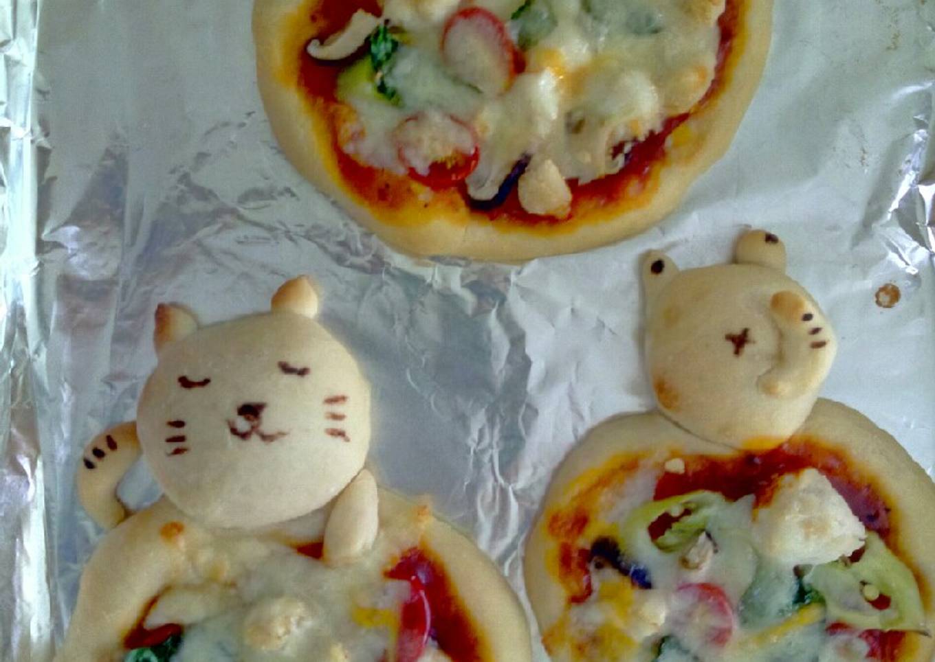 - Apply pizza sauce, topping and mozzarella. Bake at 170 C for 20 min.