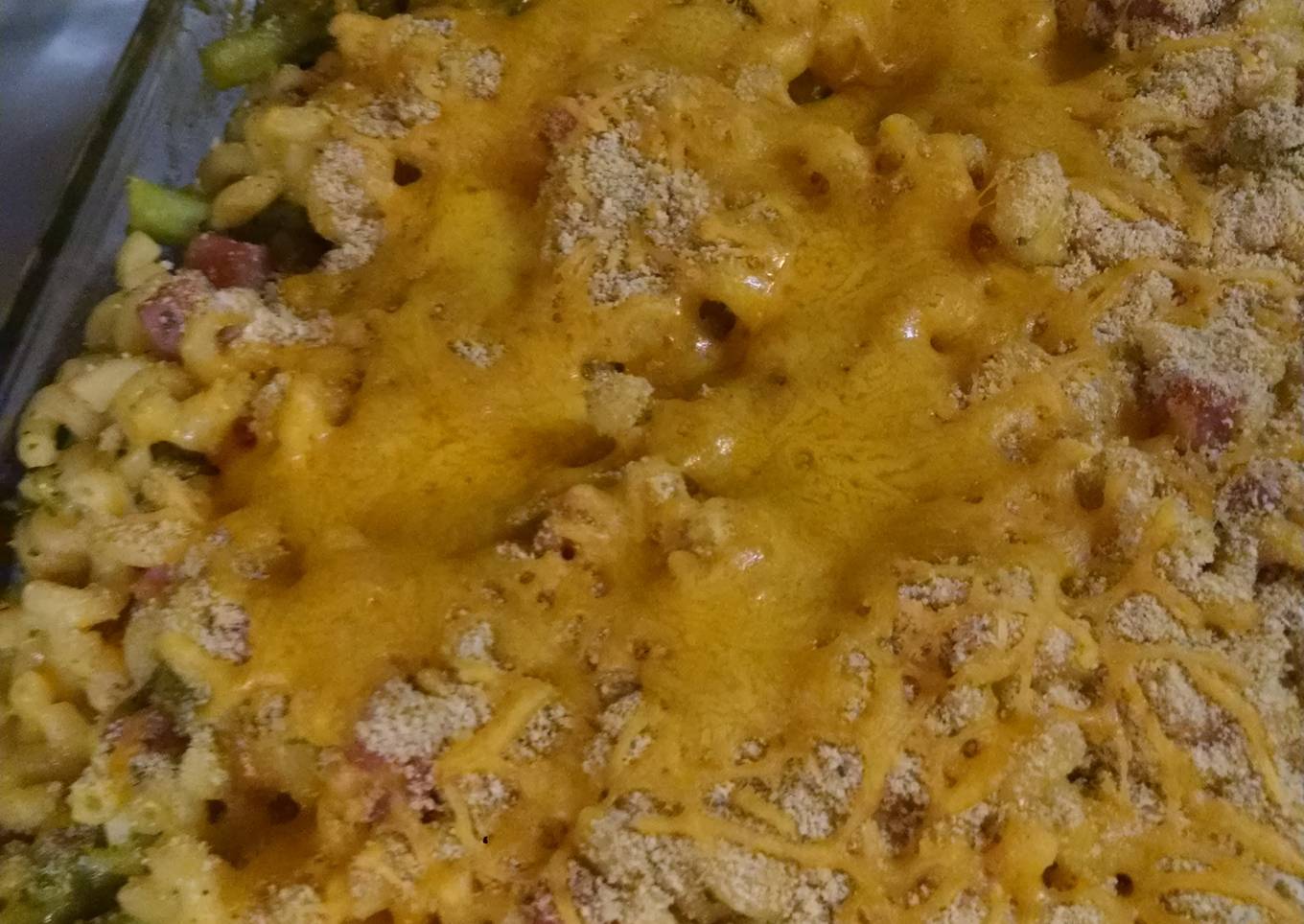 - Preheat oven to 350. Make pasta according to package directions. Add ham and broccoli during last 5 minutes.