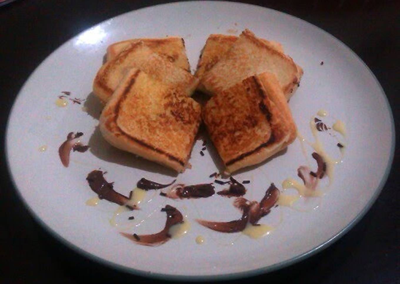 - Serve to the dessert plate and cut toast be four slice. Have a nice breakfast!