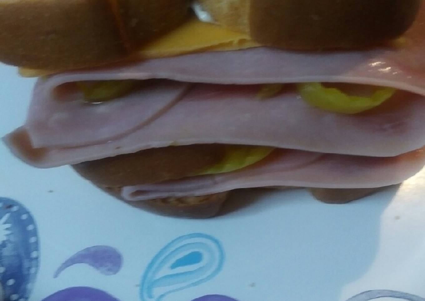- Add the peppers to, two of the slices of bread with cheese and ham.